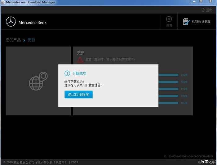 当5个进度条全为100%时,电脑提示以上界面,然后点击退出应用程序,表示地图已下载完成。安全弹出U盘。