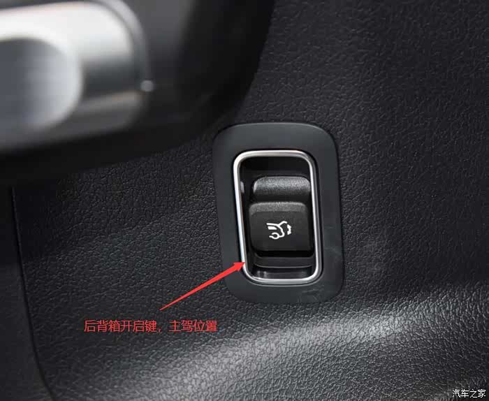 驾驶室位置次按键为后备箱开关,往外拉一下后备箱门开启,往里按住不放,后备箱关闭,关闭过程中松开后背箱停止关闭。