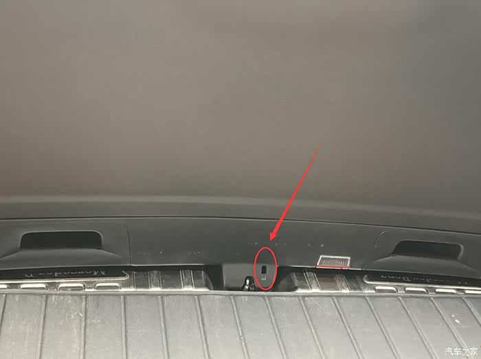 车内观看,后背箱锁扣位置次孔为车内机械钥匙开启位置。特殊时刻此处开启。