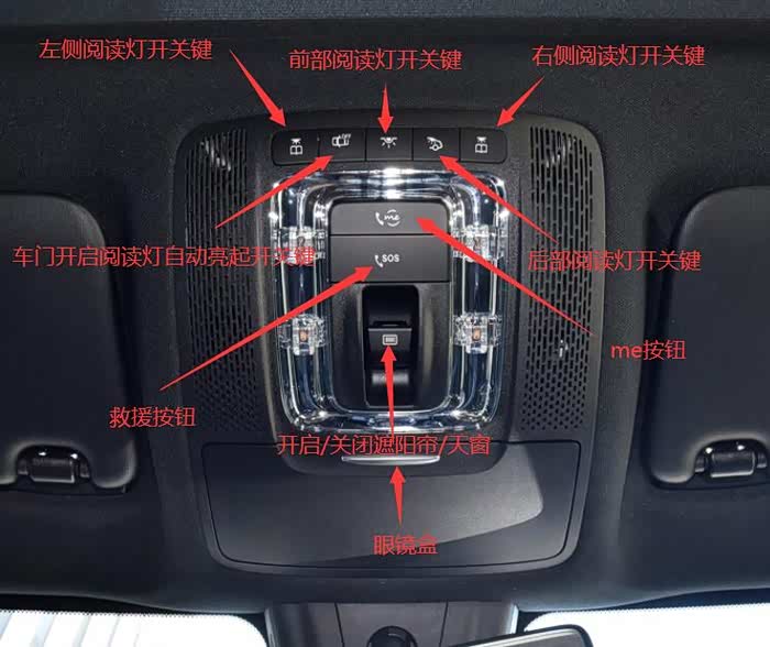 中控基本按键主要包含了启动项,档位选择、空气空调调节、手扶箱位置面板按钮、雨刷调节、灯光控制、中控车门开关锁止控制、座椅调节、车窗控制、天窗阅读灯控制等按键。