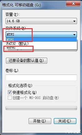 同样会提示U盘格式文件系统的格式,默认的位FAT32格式,此系统不认必须格式程NTFS或exfai格式,我选择的事NTFS格式,此格式已安装没问题,第二个ex格式没有试用,不知是否可行。