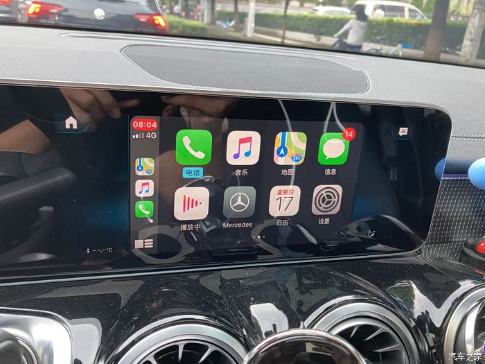 首先是用数据转接线连接车上Type-C接口,我试了下中控和手扶箱都可以用。切记充电线不可用