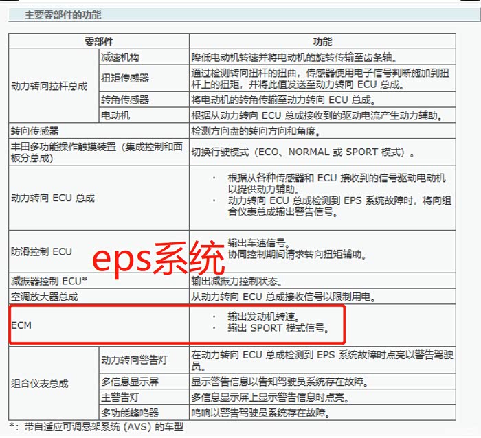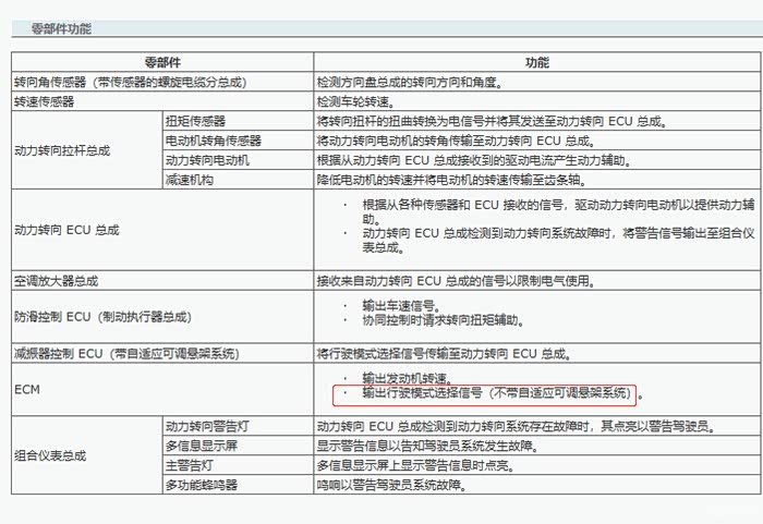 ECM就是发动机电脑,它会向EPS系统输出SPORT模式信号。