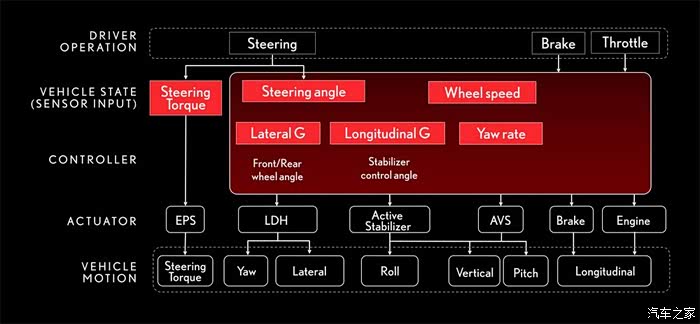 这张图为最新版本的VDIM系统。国产皇冠的系统应该比此图的要落后一代。增加LDH不现实了,这代皇冠的VDIM系统还没到那个版本,退而求其次增加AVS进一步完善VDIM系统。