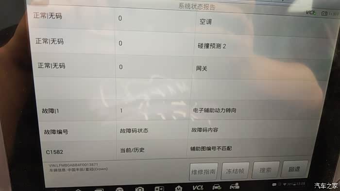 也和其他车友进行了路测共同的结论就是:这代皇冠因为后加AVS系统,导致方向机弹C1582,但EPS电脑对方向机的控制是完全正常的控制,并没有问题,包括选择运动模式时它一样会进行方向加重!