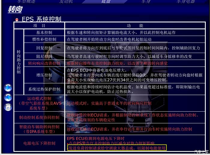 这张图写道EPS在检测到电源电压下降的时候,会控制空调的用电量。