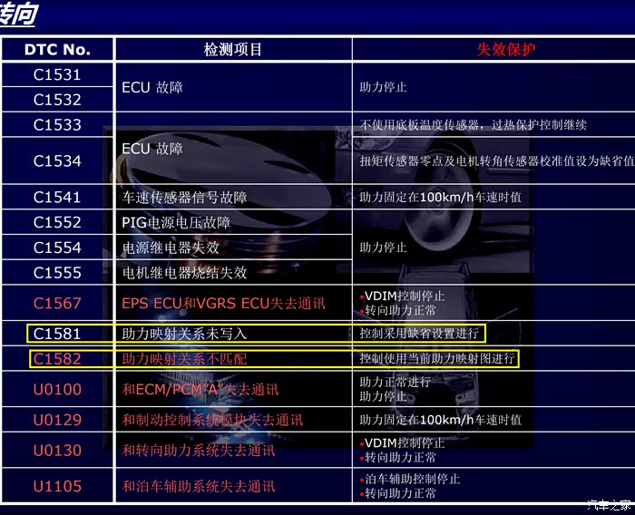 网上一些维修手册里面的说法是车辆规格参数和助力图不匹配。