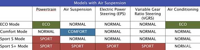 “ECO和Normal模式与AVS悬架保持一致,SPORT模式可调节油门响应和转向。