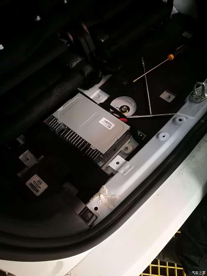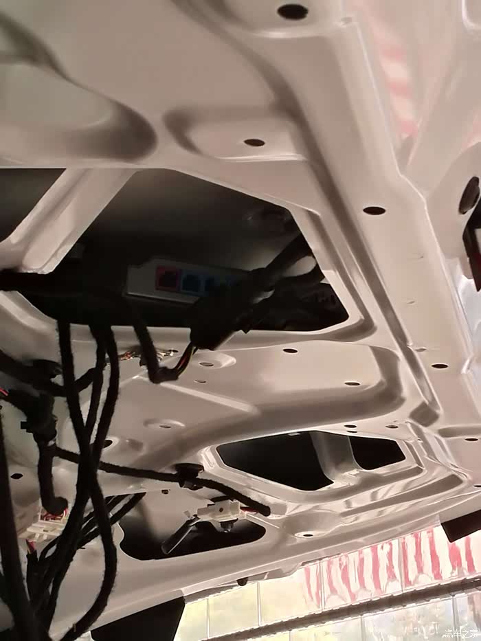 拆下后备箱上面的盖子,接电,原车已预留接口,为比亚迪点赞