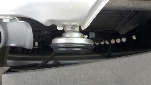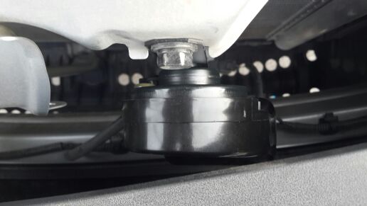 看起来做工还行,标注的产地是日本,也不知真假,自己找了偏僻的地方安装,基本上20分钟搞定,试了试,声音混厚低沉,声音也大了不少,很是满意,希望能用的久些。打开引擎盖,把自带的用12的扳手拆下来,连线是卡口的,直接拔下来,然后依次换上蜗牛喇叭。注意,高音侧和低音侧别装反了,喇叭上带有H的就是高音喇叭,带L的低音喇叭。在换装期间千万不能按喇叭开关,容易烧毁。上图找到原来的喇叭位置