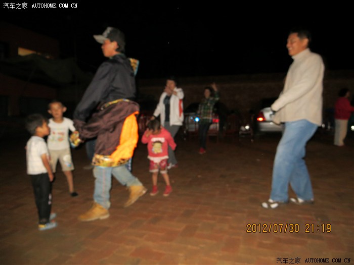 吃过饭后在主人家的院子里,大家一起跳藏族舞啊!