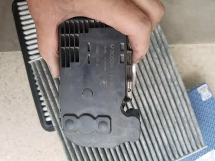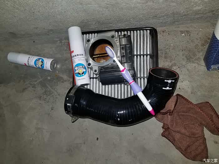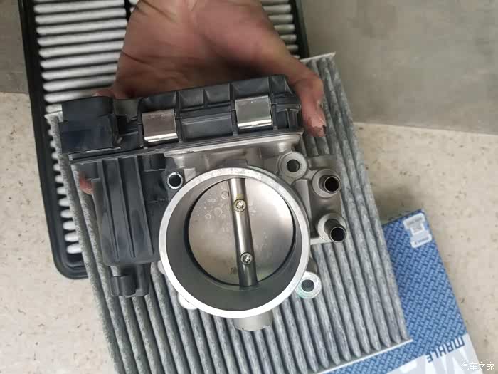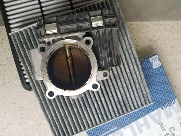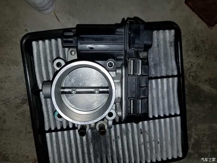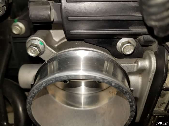 由于节气门所在的位置非常尴尬,没法单手边拍边做,所以过程就没有拍照了,四个螺丝所在的位置肉眼没法看见,只能用手去摸。4w公里的进气阀还是比较脏,厚厚的一层油垢