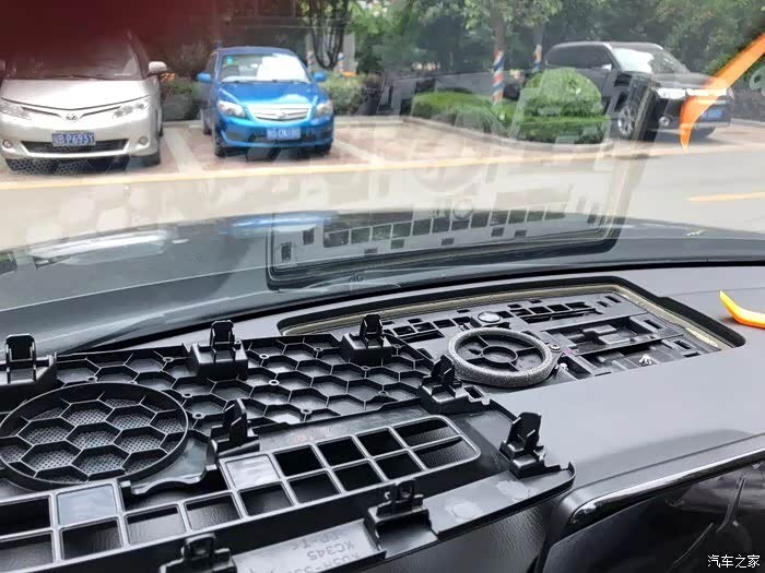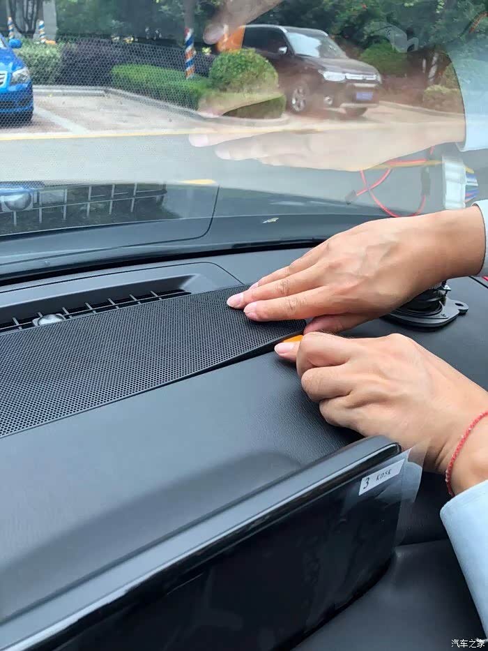 低配中间是一个假喇叭塑料盖,高配是红色bose。盘它,螺丝拆掉