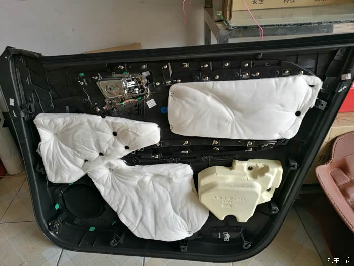 下一步想改的就是锁车自动关闭所有车窗。原理和锁车自动折叠车耳朵原理一样。不过,电不好找罢了。今天也把车门拆了,看看里面啥样。也为下一步的升级做准备。大家看图吧,看起来吉利在用料上还是很厚道的——除了卡子都是生料易碎以外。