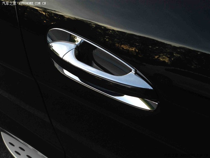 门把上的镀铬装饰。这个会无钥匙开关,只要手放上去,门自己就开了;锁车的话,用手碰一下外面的小方块就行了,实在很方便很实用。