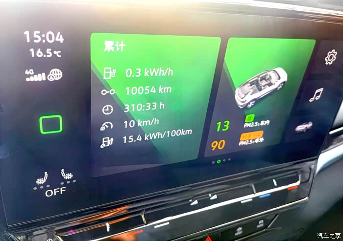 升级后的第四天,显示的近10054公里平均电耗已降至15.4kwh/100km;