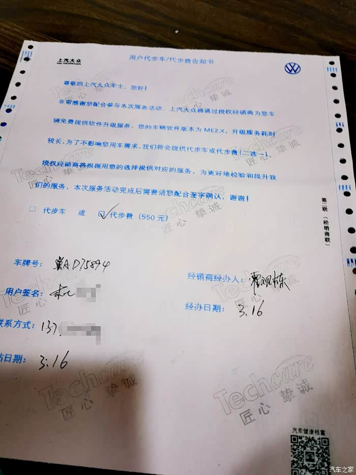 当然,这个费用全部由厂家承担,而且还给我提供了代步车或代步费(550元)二选一的补偿,毫不犹豫地选择了代步费😜