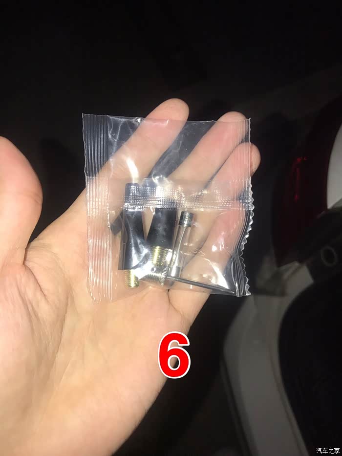 取出充气管也非常方便,有凹口设计,用手指轻轻一拨就可以把充气管取下来,还是非常人性化的。并且送了三个充气头,可以冲电瓶车之类的。