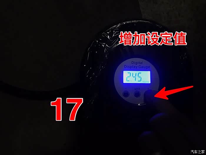 看不懂机械指针,只能买一个数字显示的充气泵。小巧玲珑,放在后备箱也不占地方。
