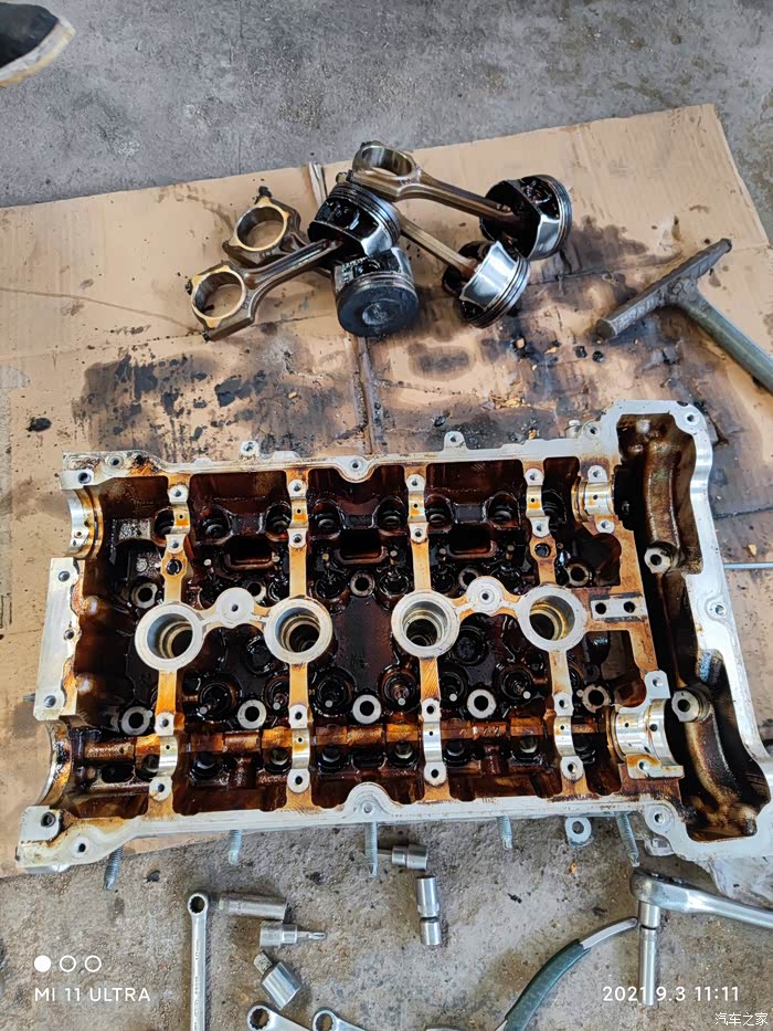 以为这就完了吗,那你就太天真了,发动机故障灯一直在注视着你,机油还是照烧不误,有一次地板油车又是一抖一抖一抖的,直接熄火把我扔路边了,怎么发动都发动不起来,偏偏手机还没带,想叫个救援都不行,打了个出租车让司机等我1分钟拿个手机再返回去,给司机钱后去拿手机,就不到一分钟时间回来直接把我甩了,你说气人不(要不现在都不打出租车是有原因的),没办法又打了个滴滴回去,上车后再试试还能发动不,居然发动起来了,我是该高兴呢还是该庆幸呢。还有一次车停了一周没开,发动后发动机转速过高,散热风扇呼呼的转,噪音特别大,熄火后风扇还是狂转不停,开起来动力也差,急着上班就没管,下班后又神奇的好了,卧槽,这是玩我呢吧,没事消遣我呢。。。天天看着神灯亮,发动就提示需要维修发动机,闻着烧机油的味,网上查了好多资料,说是积碳多活塞环卡死导致烧机油,还有气门油封要换等等等。。。最后实在受不了了,索性给发动机来个大保健,这次要解决所有问题