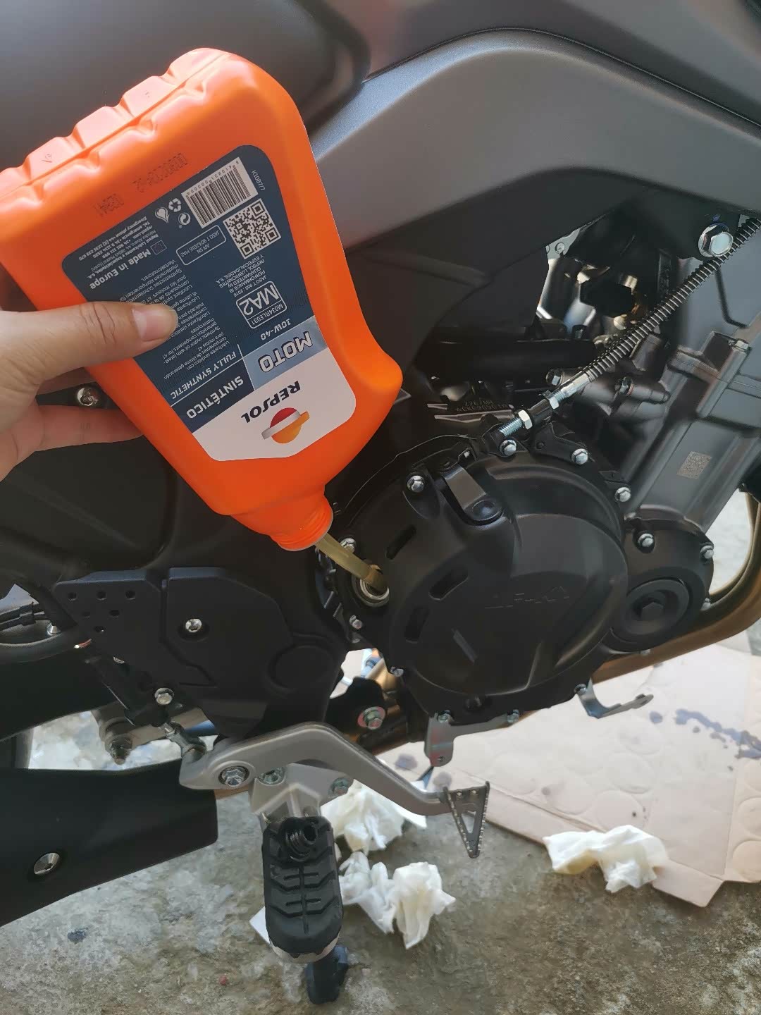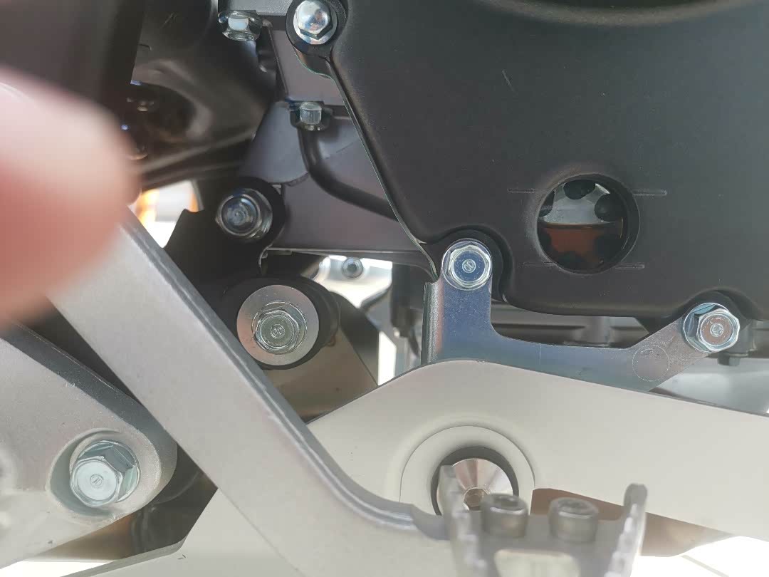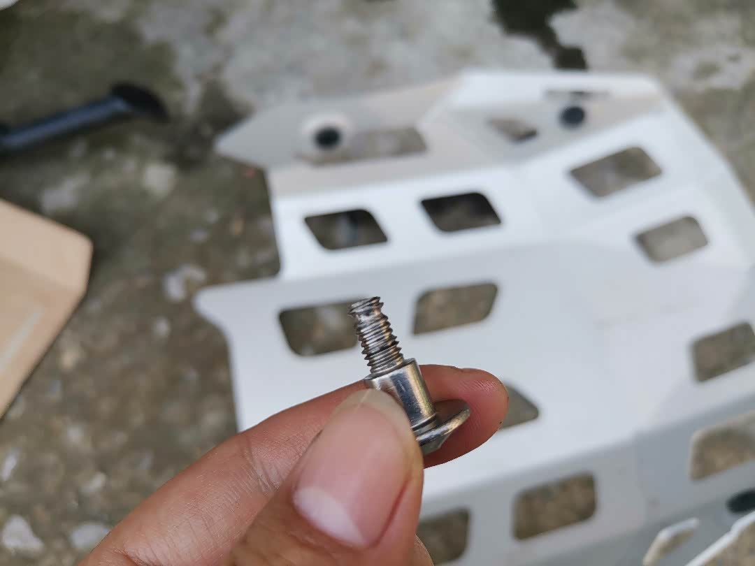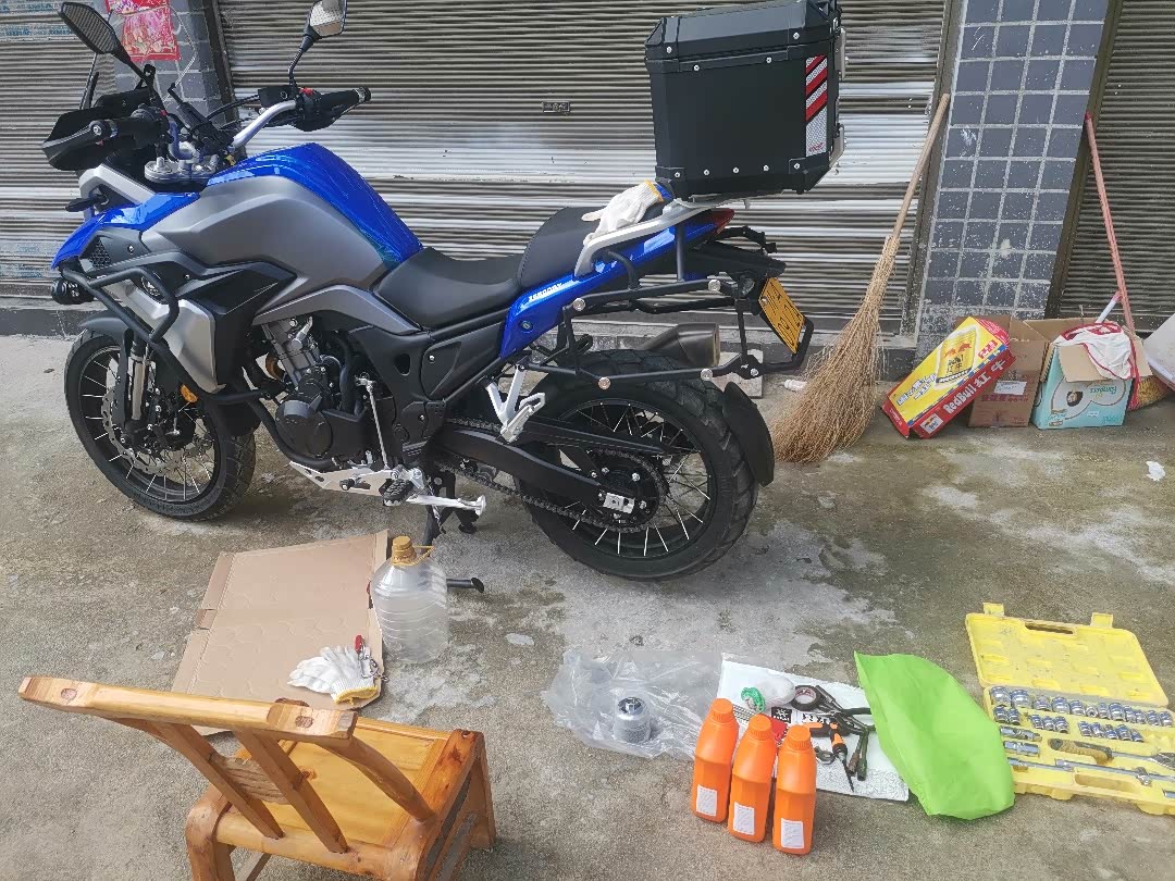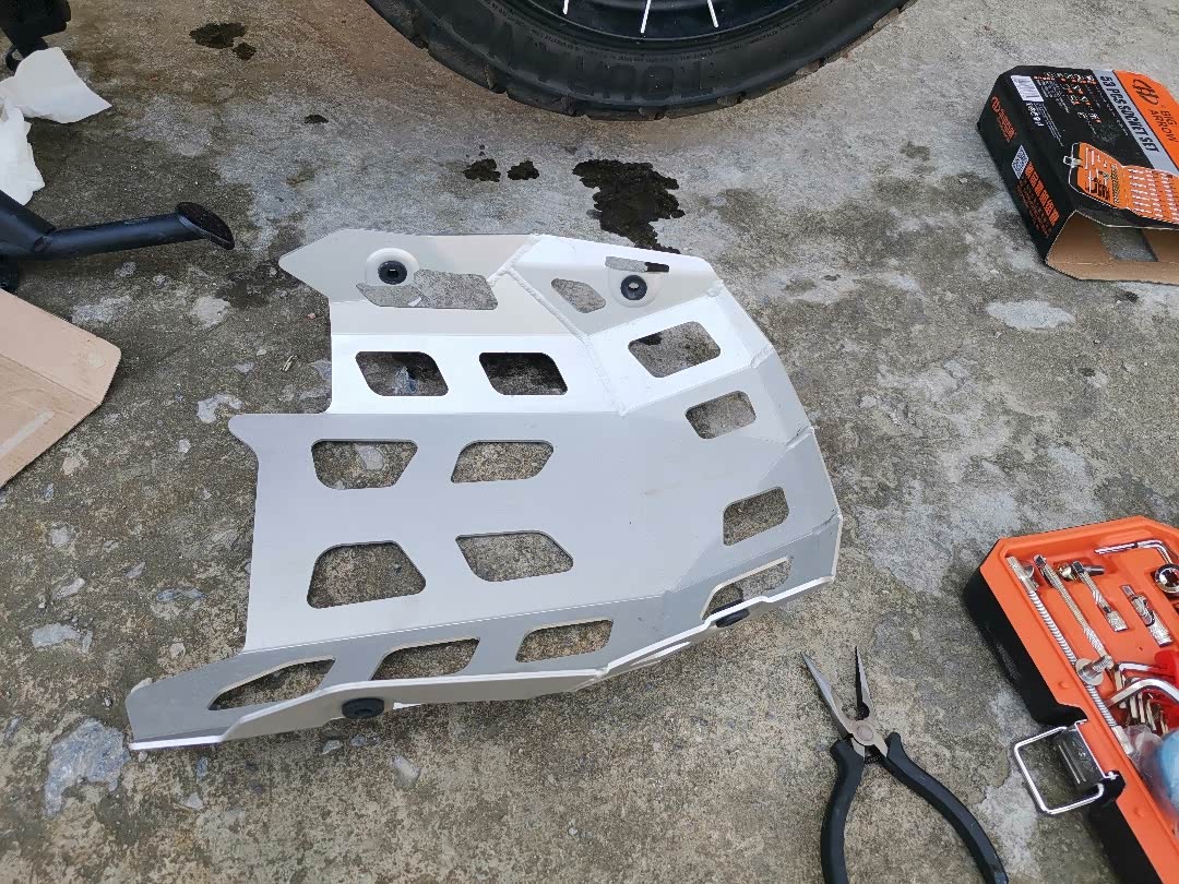 骑到巫溪县山沟沟项目上只有自己保养,新车放油螺丝太紧,只有下护板,用大扭搬才松了放油螺丝,原厂护板装配有应力,有颗护板螺丝滑丝,几十公里外修车找了不到,只有找官网配了备件,让客服送了2颗。