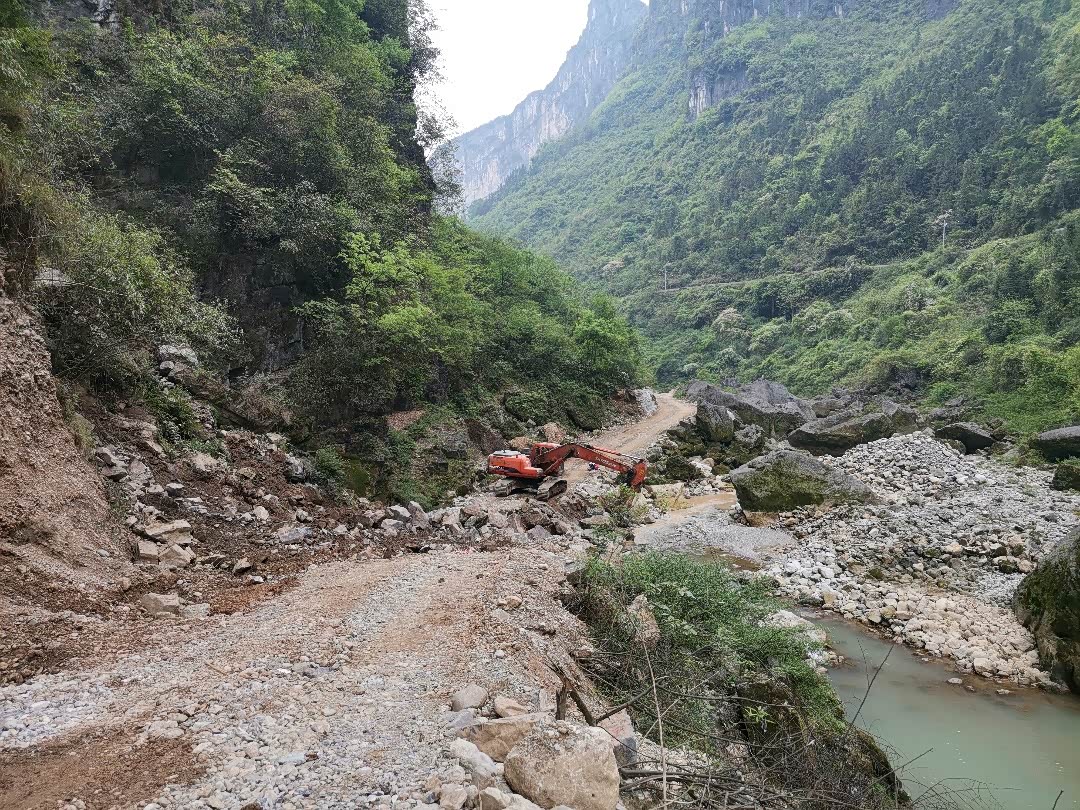 2公里多,只通挖机,装载机,要下月才通行,500X等降坡就可以提前出场。