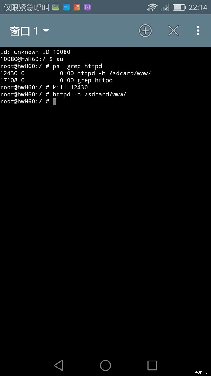 4)httpd -h /sdcard/www/ #运行httpd程序,启动web server。