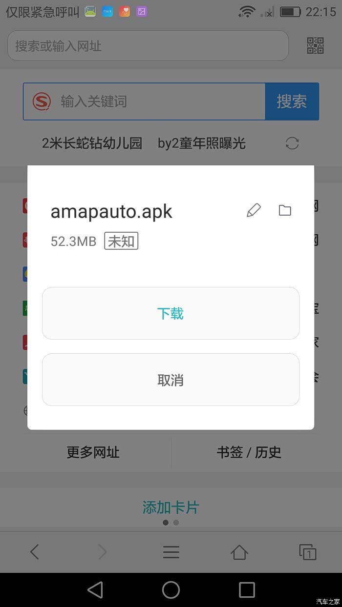 这之前可以先做个测试,手机浏览器里敲入网址:navitrack.pateo.com.cn/plugins/downamap/amapauto.apk,会打开文件下载,那就一切ok了,如下图: