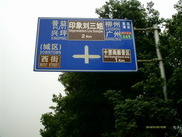 全程二级路,刚好阳朔县城有一段隧道施工,所以绕行城区里面,看了一眼世界闻名的阳朔西街,但是白天不好玩,等回程时在阳朔住宿再一睹芳容!