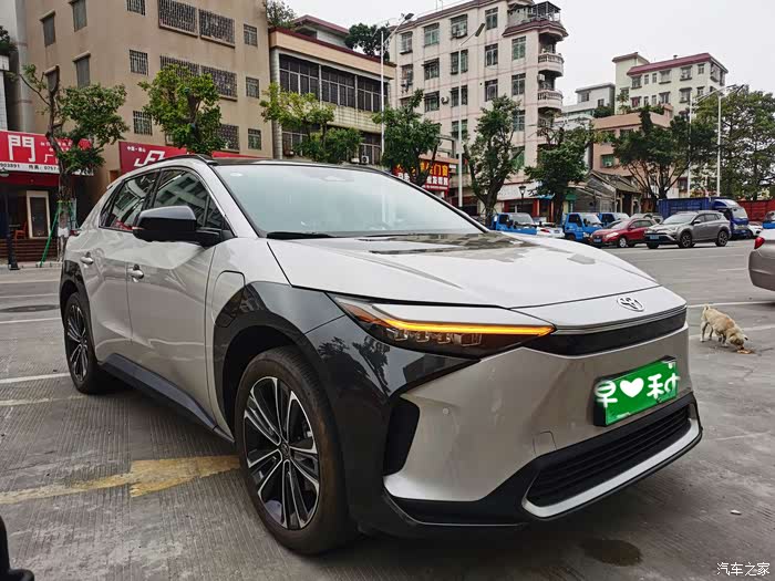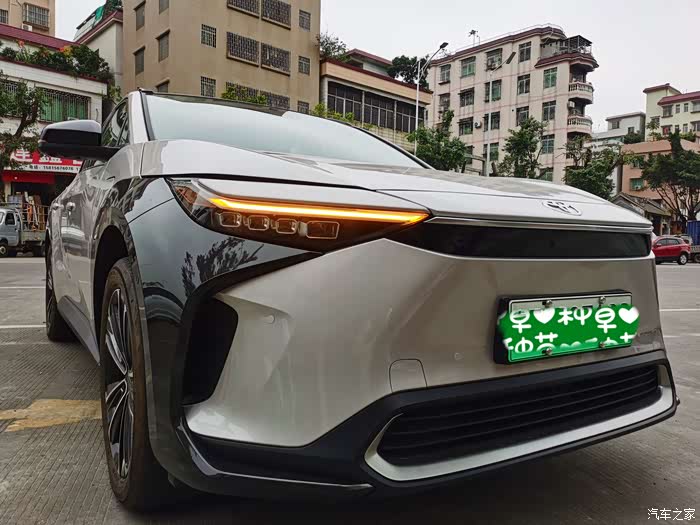 本来不是很着急换车的,家里的小致炫开了快6年了,其实质量挺好的,期间也就正常保养,一直没有什么问题,就是油耗高点八九个油,刚好老婆怀上了老二,想着老二要是出生了小致炫可能容纳空间有限,所以就考虑把家里的车换掉找一辆空间大点的车。因为家里就一辆车,当初是没太敢轻易换新能源的,首先看的是威兰达双擎,毕竟第一辆车是丰田车,选车还是会有所偏向的看丰田。当时去了好几家店,优惠太少了,谈不下来,因为离老二出生还有点时间,又因为各种原因搁置了一两个月,到了国庆没事又跑去看车,刚好店里看见店里摆着一辆bZ4X,第一眼看着觉得有点颠覆我对传统丰田的印象,设计太前卫很年轻化,跟销售聊说10号才上市,可以下订。可能是因为这个外观太吸引我了,想着我平时很少出远门,最多也就周边游,就在家里开也能安充电桩应该就没有续航焦虑了吧,当时老婆也没反对,就这样给了订金,等了快两个月现在终于到手了。