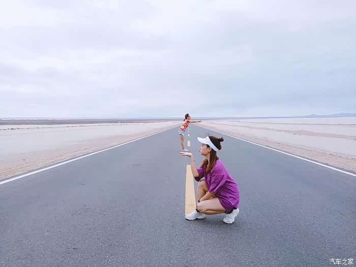路途中,笔直的大道一辆车都没有,搞怪的小伙伴们在路上玩嗨了起来。