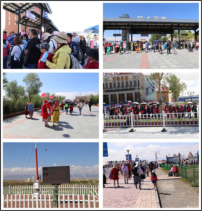 茶卡盐湖是最热门的景区,游人如织,我直接用拼图来展示一下吧,但愿湖水中别像下饺子一样
