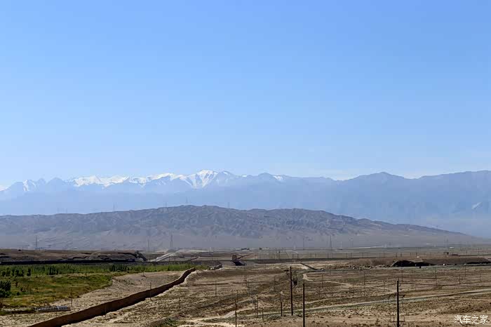 远处苍茫的祁连山脉,山顶依然是白雪皑皑