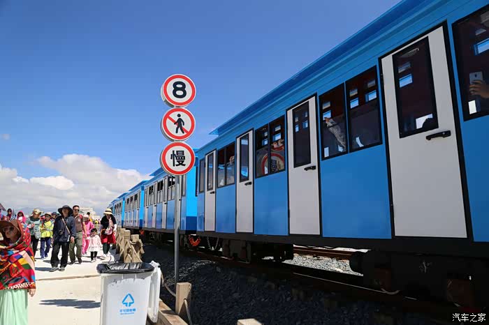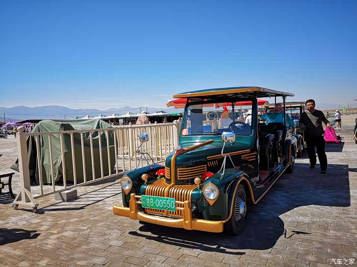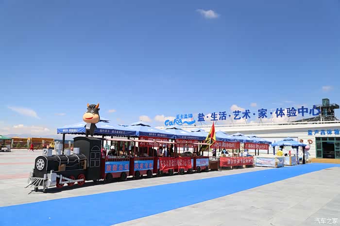 茶卡中有这种小火车代步,但是排队就要等待老半天