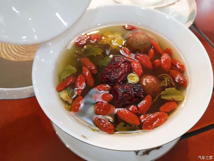 餐前的三炮台茶水,有红枣等,味道偏甜,倒也可口