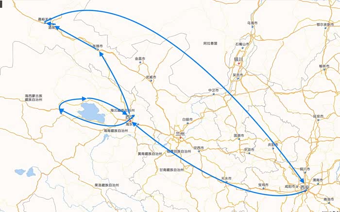 具体路线,西宁、塔尔寺、环青海湖、祁连、张掖、酒泉、嘉峪关、西安。