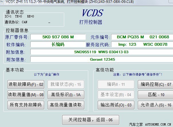 车回来后那激动不用说,但开了几天后发现一个问题,就是锁门后从车内开启车门时不报警,最害怕的就是小偷砸玻璃开门进入偷东西,不报警不是天大的好事?难道大众这点常识就没有?最后查找5053的隐藏功能,终于找到问题所在:原来是防盗系统报警声音未激活,开启后就是原车喇叭响个不停,同时伴有灯光闪烁,话不多说,上图。希望看帖的途观车友都去试试自己的爱车有木有开启报警音,方法就是:在车内拔下钥匙上锁,等十几秒防盗灯闪烁后,开车门看是否报警,如不报警即需要按此方法开启!