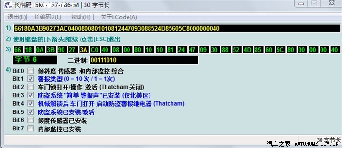 5、用上下键选择进入第6字节,将Bit5防盗系统已安装/激活选中,或直接将第6字节改为3A有一样。