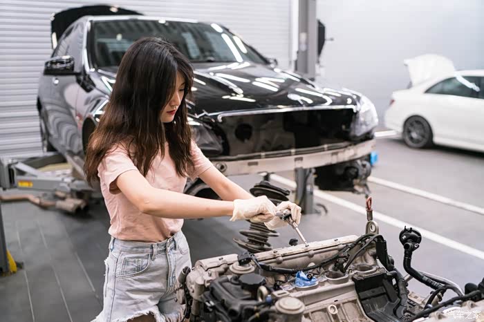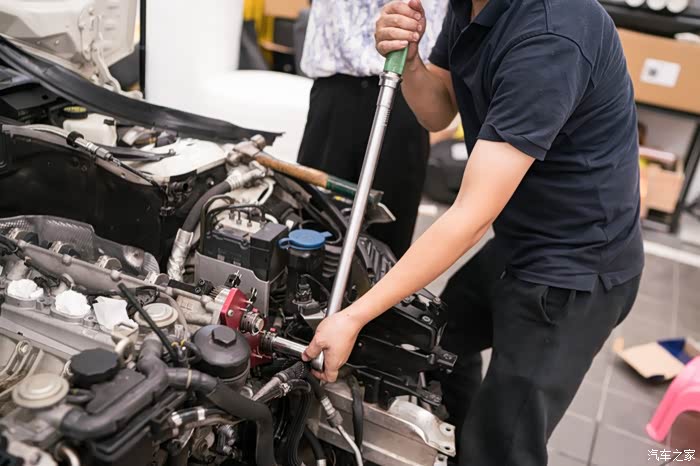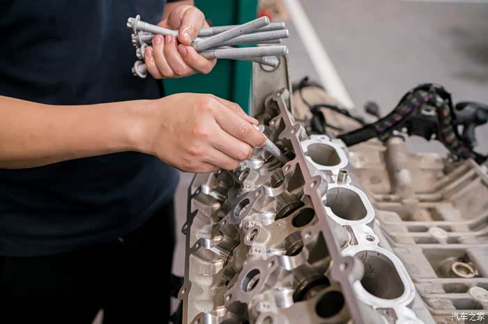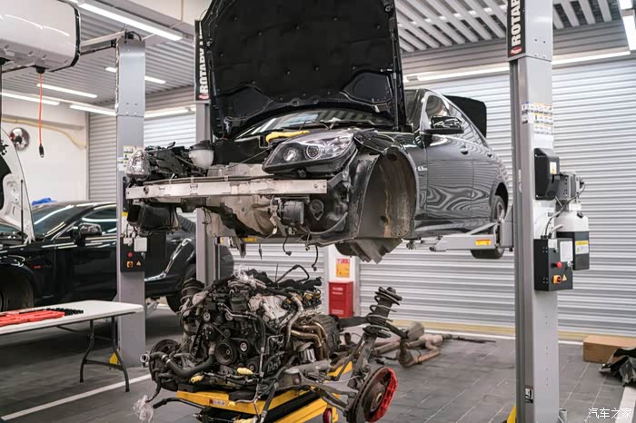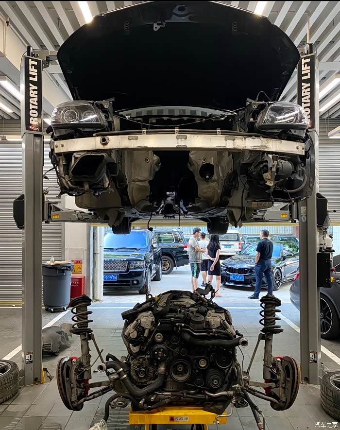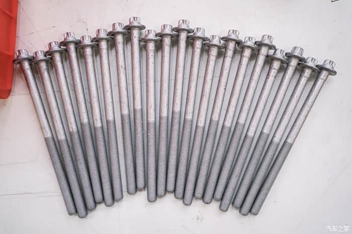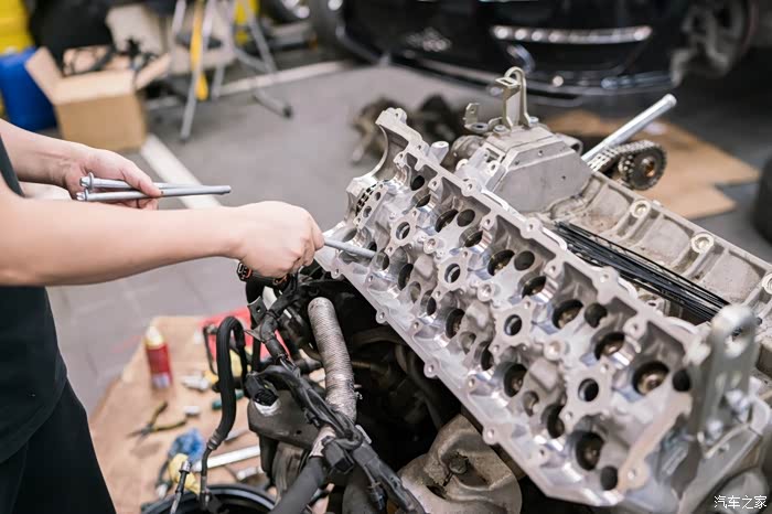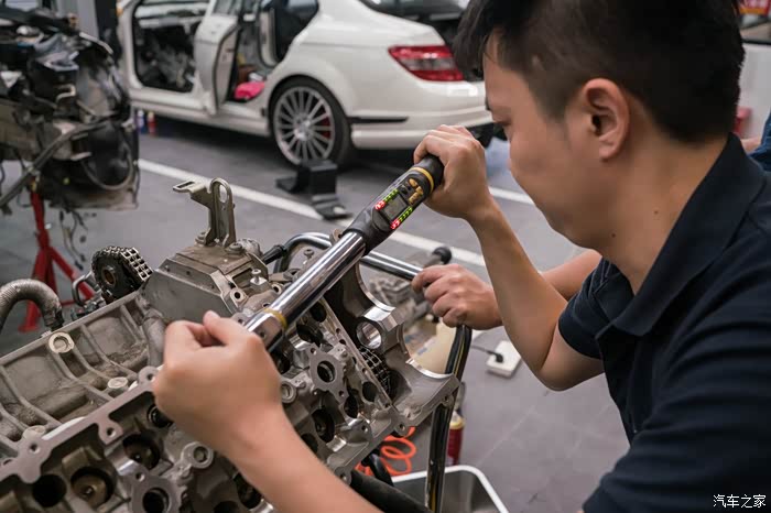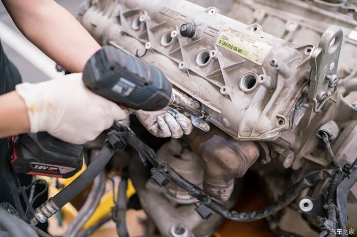 在行驶证发动机编号五位605xx之前的车,大概对应2010年12月左右出厂日期的C63和cls63,会有20个旧款凹梅花缸盖螺栓腐蚀问题。缸盖螺栓是固定缸盖和中缸的核心紧固螺栓,是否漏水漏气漏油就靠他们。缸盖螺栓只要有一个锈到有一点点疲软,就会导致缸垫冲床,前期反应就是缺冷却液,后期就是致命性大事儿,冷却液会吸入缸内,机油乳化,发动机磨损。因为C63和CLS63机舱非常小,所以唯一可靠的更换方式如下,也是最简单的方式,看着工程大,其实很简单无损,因为奔驰生产线就是用同样方法把发动机举到车上。
