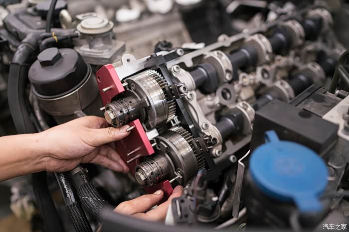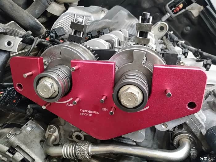 卡入正时专用工具,松掉调节器链轮螺栓