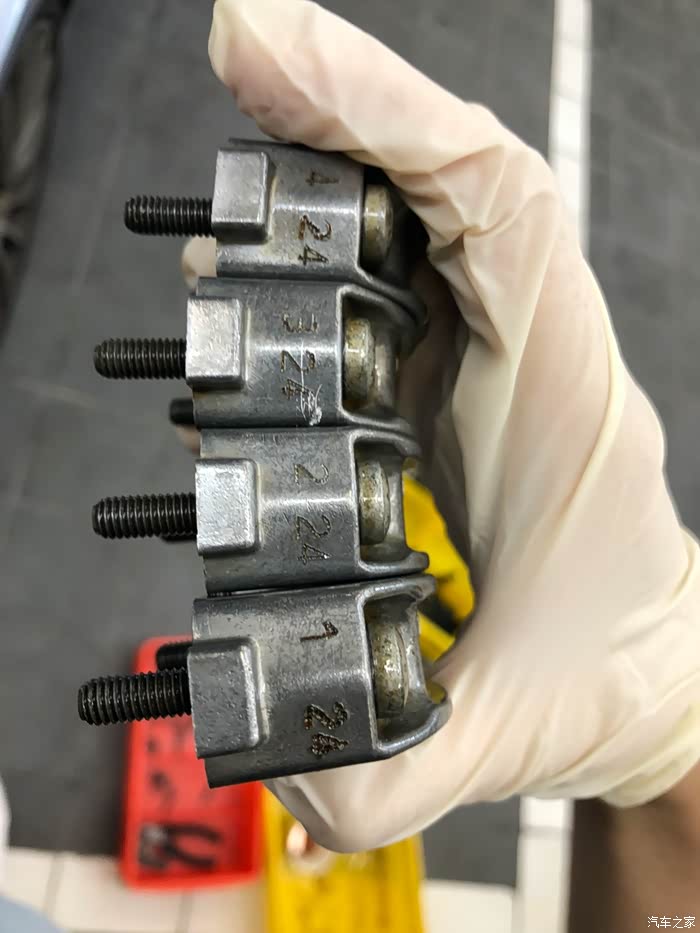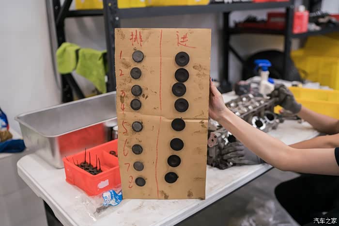 按顺序把凸轮轴瓦盖放到原先的位置(瓦盖侧面有循序)