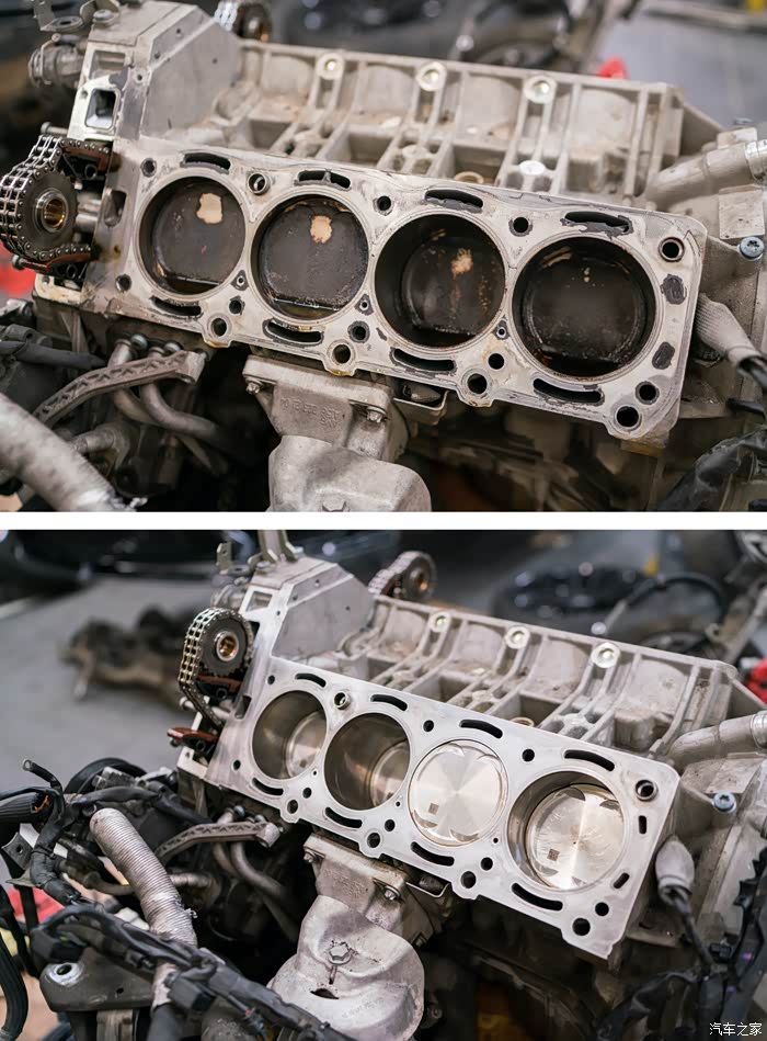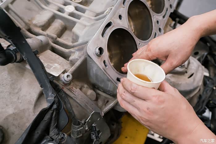 清洗好的气缸壁表面提前抹上一层机油,以确保第一次启动时 不会磨损缸套,充分保证缸压