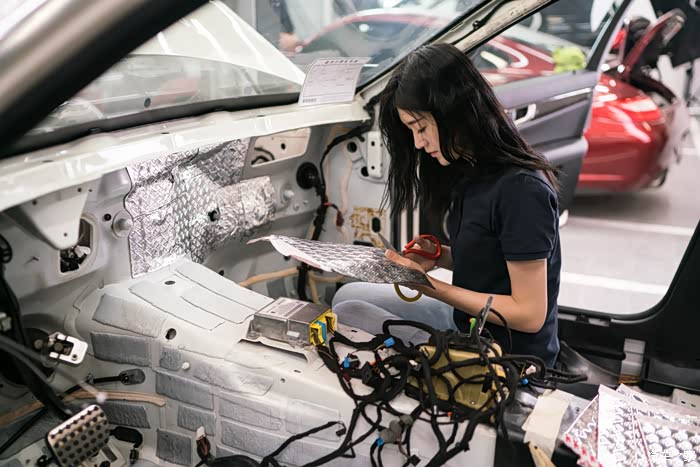 在大部分W204 C63(2013年以前),W218 CLS63,W219 CLS63上都是通病,以W204 C63为例,原厂用了有异味的隔音隔热材料,不是简单换地毯就能解决。解决方式是把旧隔音材料拆除,替换为美国3M环保止震板和隔音棉,消除臭味,顺带让车内降温2-4度,不会整个中控台发烫,另外一熄火就热浪夹杂臭味滚滚而来。另外某些年份W204车内线束也有黏胶异味,顺便一次性擦掉解决。这个我以前发过帖子。欢迎翻查。