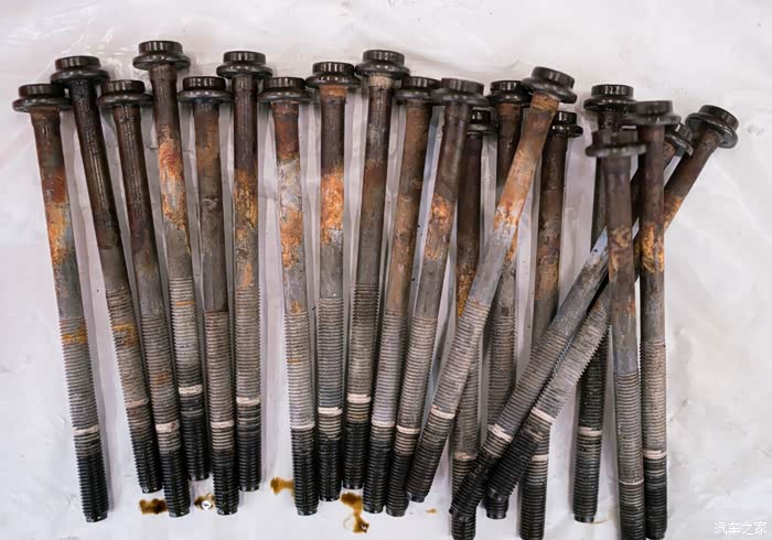 锈蚀的缸盖螺栓