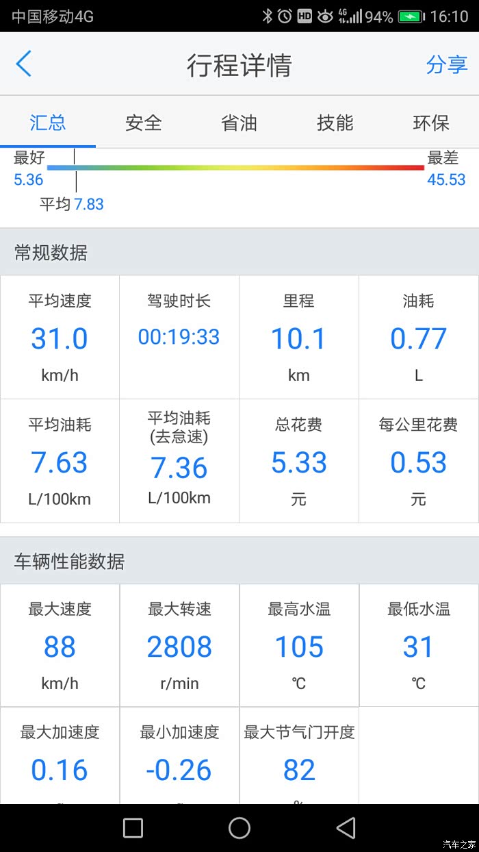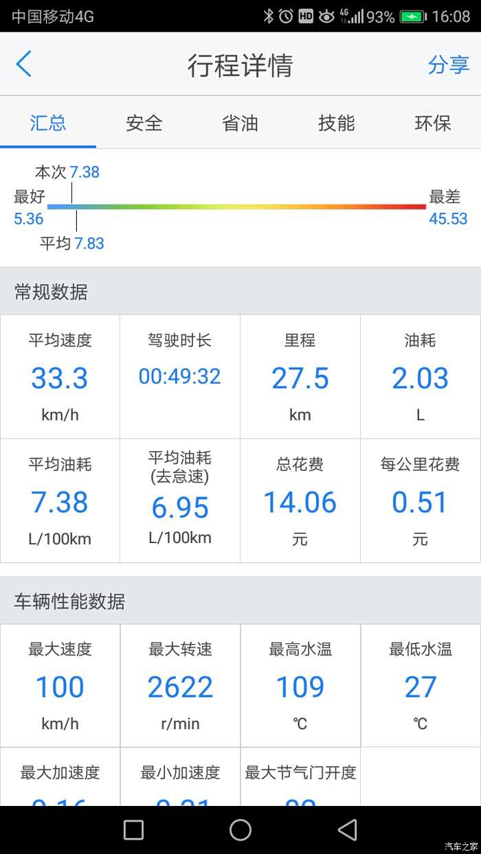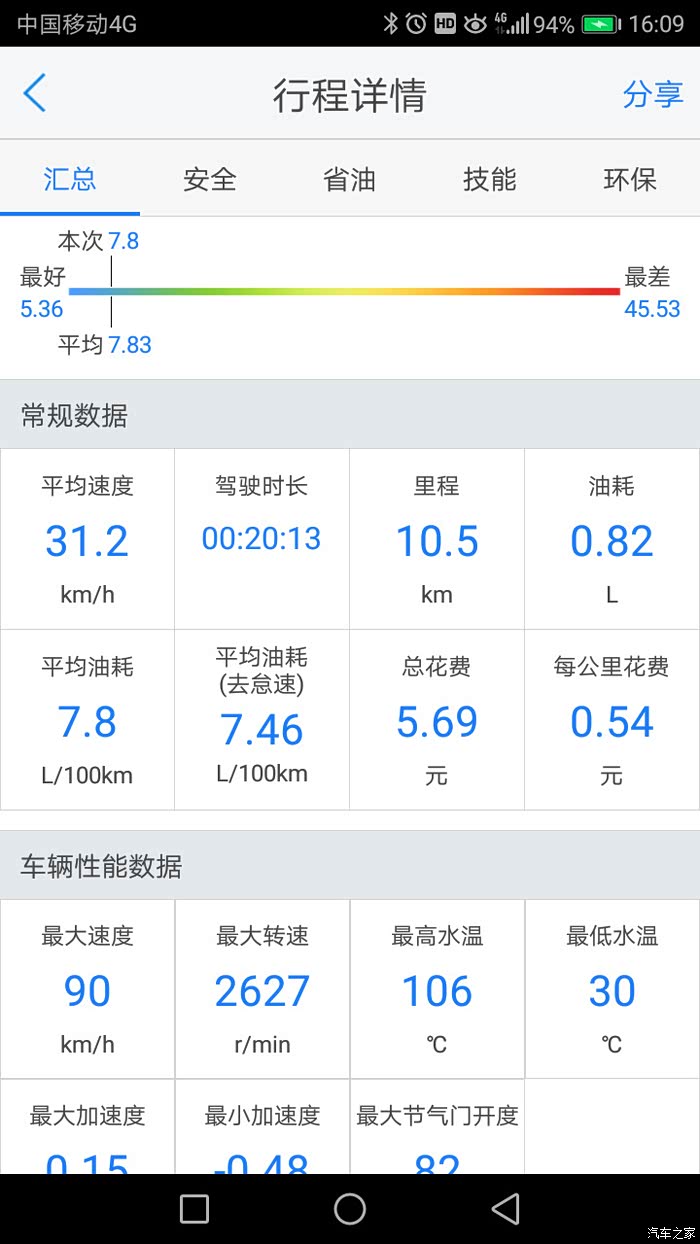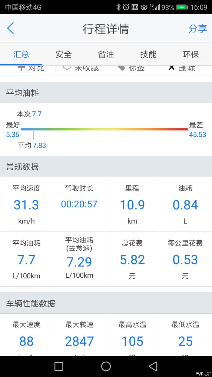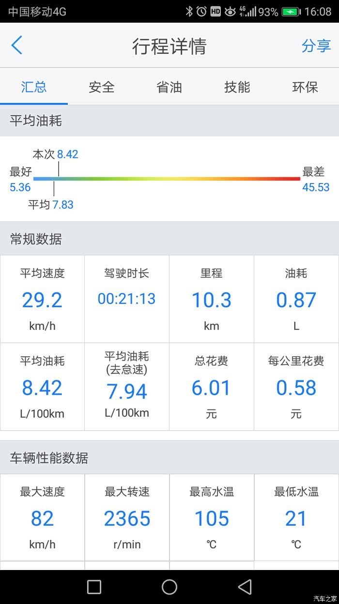基本就是这些了,我觉得习惯熟练了用起来也不麻烦。下面附一些我的OBD盒子记录的这周上下班的平均油耗和去怠速的油耗对比,参考就好,不一定准。较为准确的油耗参考最后2张小熊油耗软件APP统计的油耗,这个稍微准确一些。