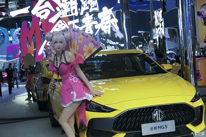 名爵二次元车模 这也是车展看到的第一个车模,现在车展车模也是非常少,名爵5也是一款紧凑型轿车,外观颜色都比较时尚 这车模我喜欢