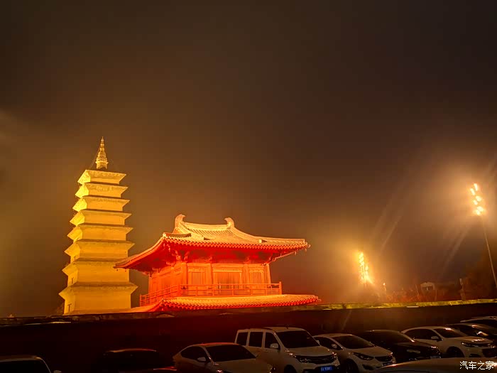 进城找食宿之处,这个塔十分漂亮,明天白天应该更美。