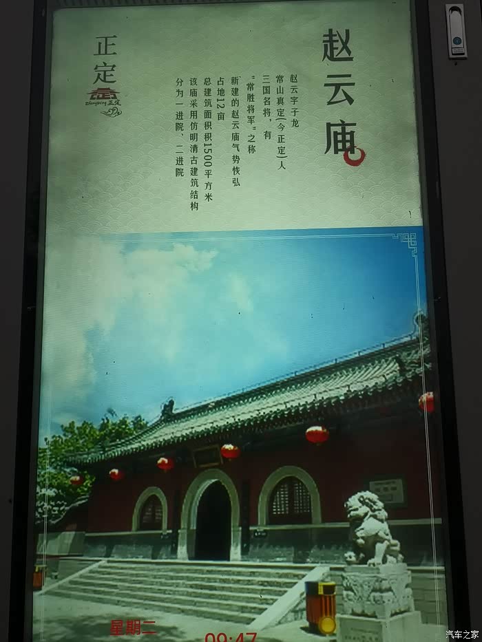 在一个宣传广告播放机的下面坐下歇会,顺道看看正定的宣传片,为下步景点和风土人情有个初步感觉。