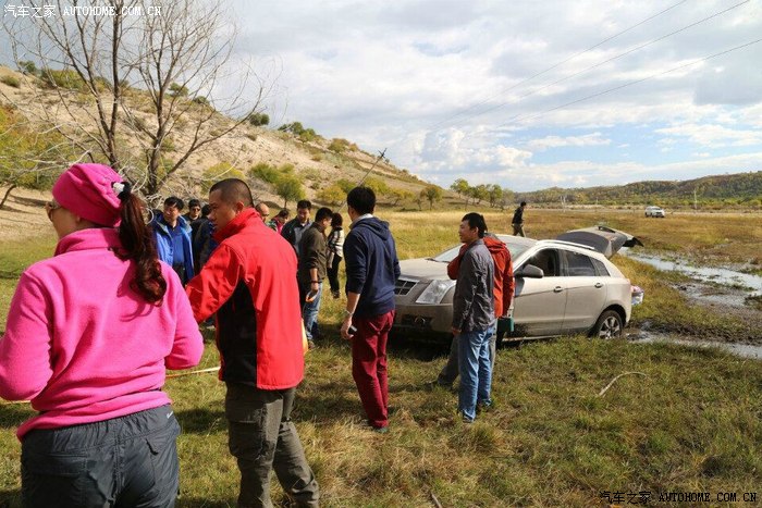 越野结束返回时通过一条不明情况的水沟,水沟很深,在后轮快要上来时,因为心疼小凯和开车的本能,收了一下油,导致后轮先在淤泥沟了,好在有兄弟,上拖车绳,很快脱困!