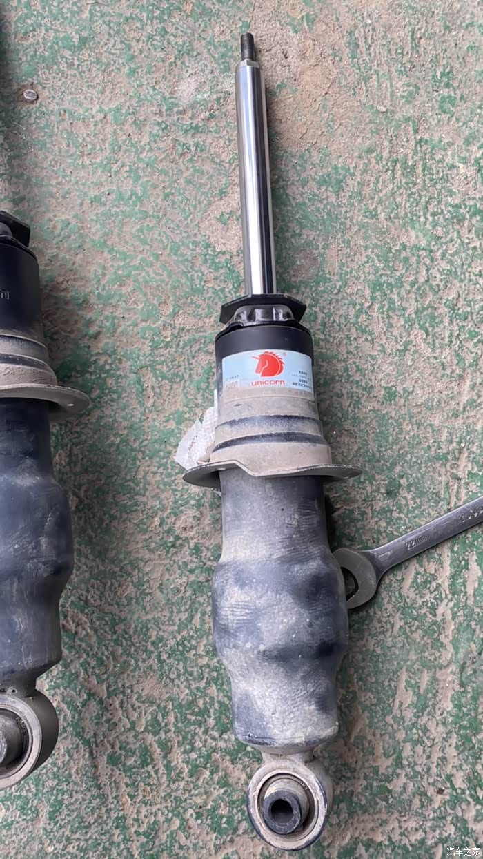 崭新的四条避震,本来还一直犹豫换了会不会影响原车避震的自调平功能,因为我需要一定的高度去爬山,降低了就失去这个车的意义了。通过我自己的亲自试了一下后排的舒适,我自己都感觉到太颠了,如果不换避震就得换车了,忍受不了这个底盘,如同面包车的板悬一般,想都没想了直接上。